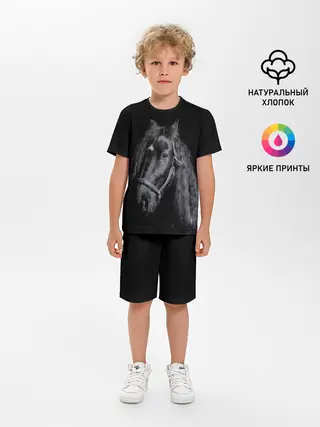 Детская пижама с шортами / Лошадь на черном фоне