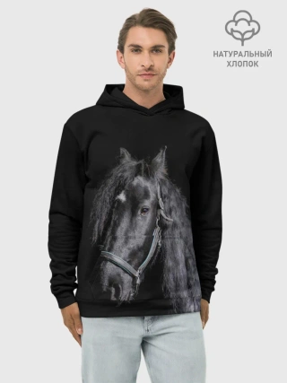Худи мужской база хлопок / Лошадь на черном фоне
