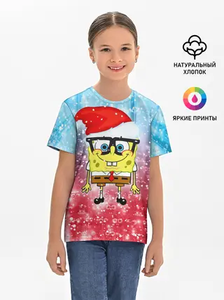 Женская футболка оверсайз / Новогодний Спанч Боб