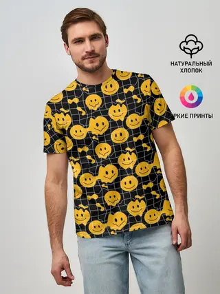 Мужская базовая футболка / Психоделические смайлы
