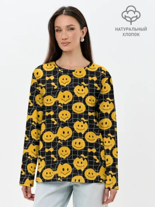 Лонгслив женский. Хлопок / Психоделические смайлы
