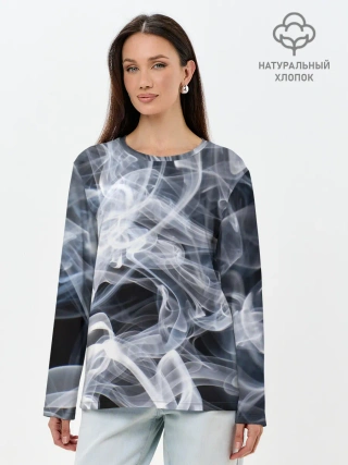 Лонгслив женский. Хлопок / Графика дыма