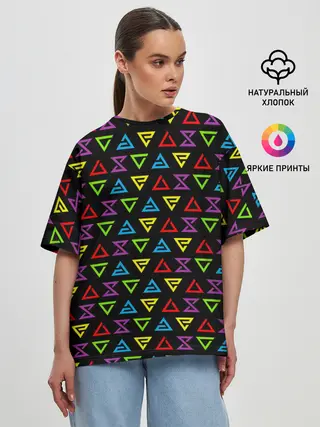 Женская футболка оверсайз / ВЕДЬМАК ЗНАКИ ПАТТЕРН ЦВЕТНОЙ | THE WITCHER