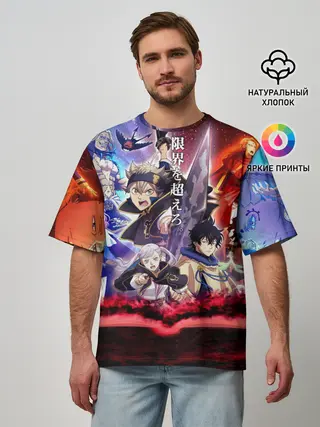 Мужская футболка оверсайз / Черный клевер герои и вселенная Аста Юно