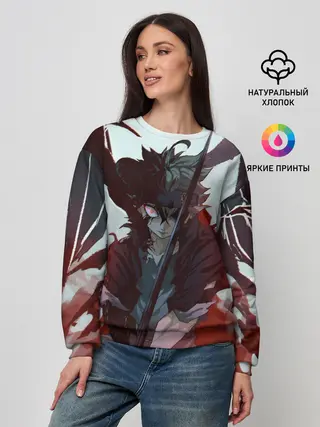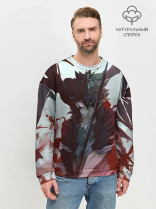 Мужской свитшот базовый / Аста в режиме демона черный клевер