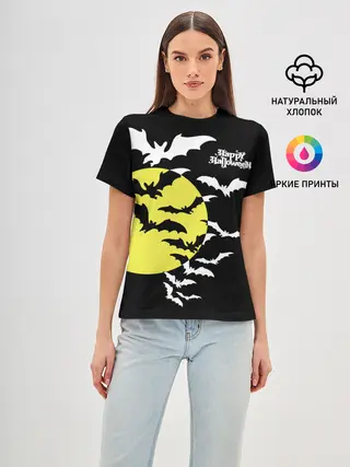 Женская футболка оверсайз / Летучие мыши на Хэллоуин