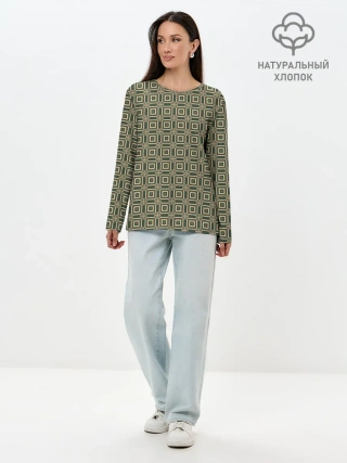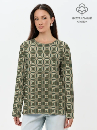 Лонгслив женский. Хлопок / Абстракция из зеленых квадратов