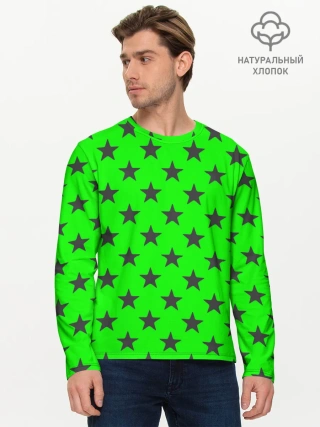 Мужской лонгслив базовый / звездный фон зеленый