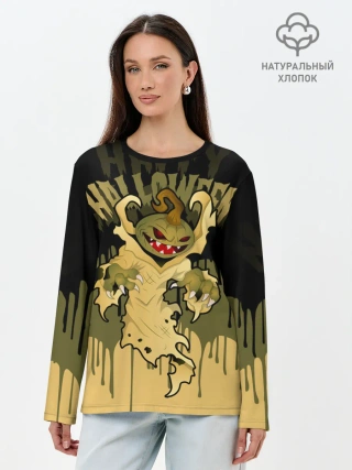 Лонгслив женский. Хлопок / Тыква в ночь мертвецов