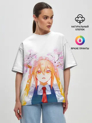 Женская футболка оверсайз / Горничная Мисс Кобаяши расцветает Тору