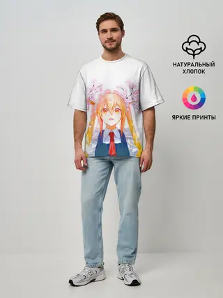 Мужская футболка оверсайз / Горничная Мисс Кобаяши расцветает Тору