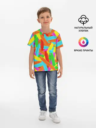 Детская базовая футболка / Фон Цветные трубки Pop Tubes, Поп тубус