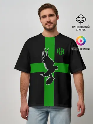 Мужская футболка оверсайз / Hollywood Undead заеленный крест