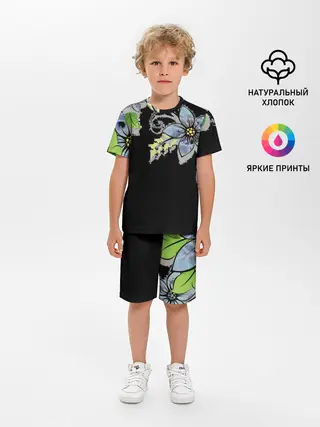 Детская пижама с шортами / Цветочная композиция с бабочками
