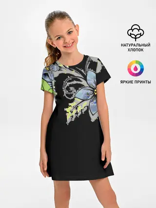 Детская пижама с брюками / Цветочная композиция с бабочками