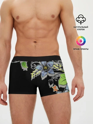 Мужские трусы боксеры / Цветочная композиция с бабочками
