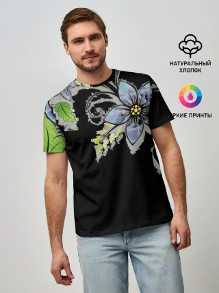 Мужская базовая футболка / Цветочная композиция с бабочками