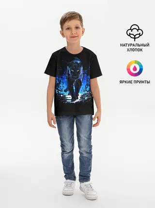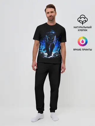 Мужская футболка оверсайз / Черная пантера пятна краски