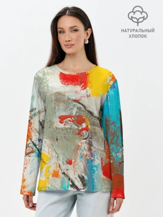 Лонгслив женский. Хлопок / Буйство красок 3D