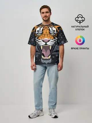 Мужская футболка оверсайз / Амурский тигр в ночи