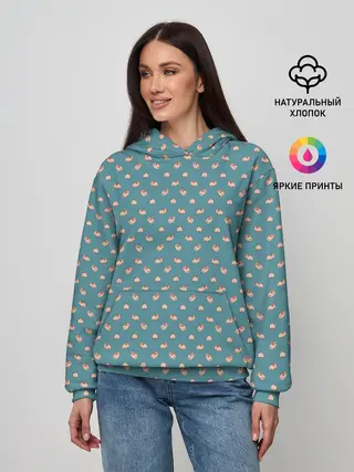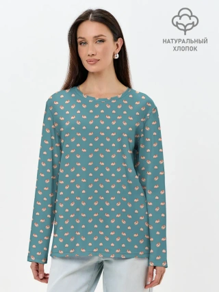 Лонгслив женский. Хлопок / Паттерн хомячков