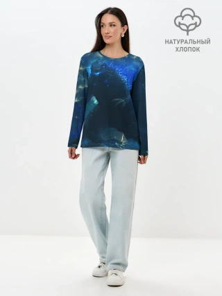 Лонгслив женский. Хлопок / ГОДЗИЛЛА В МОРЕ
