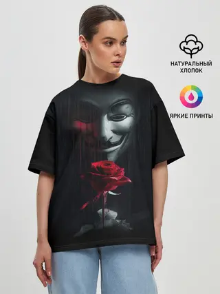Женская футболка оверсайз / АНОНИМУС РОЗА | ANONYMOUS ROSE | ГАЙ ФОКС