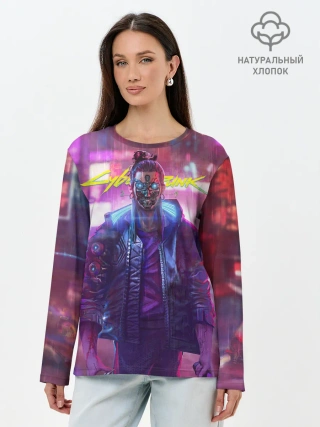 Лонгслив женский. Хлопок / CYBERPUNK 2077 SAMURAI, ХАОС