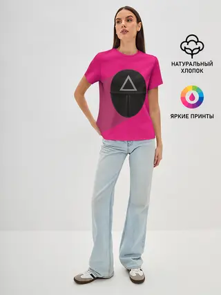 Женская футболка оверсайз / ИГРА В КАЛЬМАРА МАСКА ТРЕУГОЛЬНИК С ТЕНЬЮ