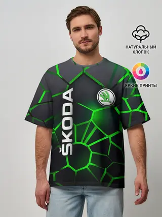 Мужская футболка оверсайз / 3D плиты с подсветкой Шкода