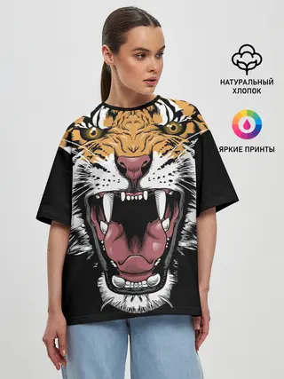 Женская футболка оверсайз / Оскал амурского тигра