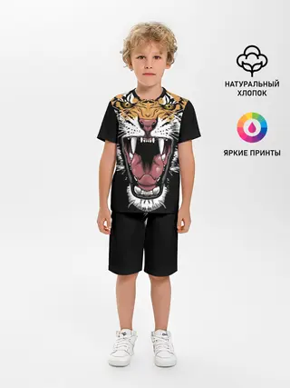 Детская пижама с шортами / Оскал амурского тигра