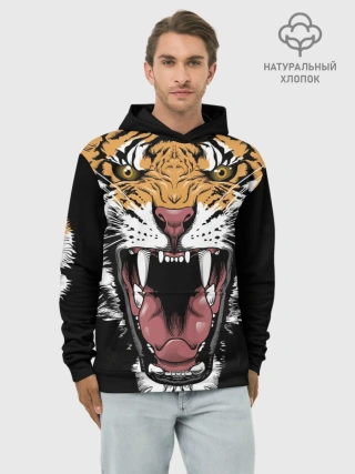 Худи мужской база хлопок / Оскал амурского тигра