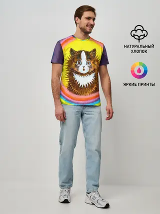 Мужская базовая футболка / Радужный кот Луиса Уэйна