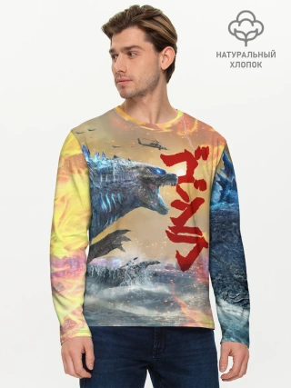 Мужской лонгслив базовый / ГОДЗИЛЛА АТАКУЕТ!
