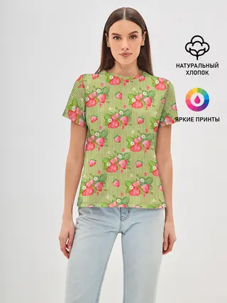 Женская базовая футболка / Клубничка паттерн