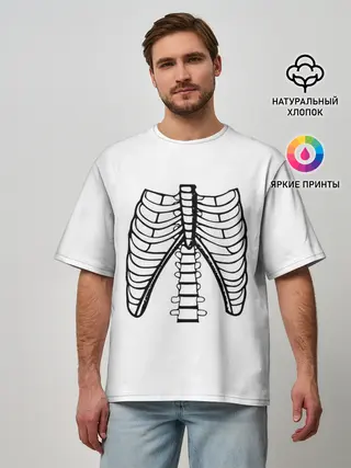 Мужская футболка оверсайз / ребра скелета