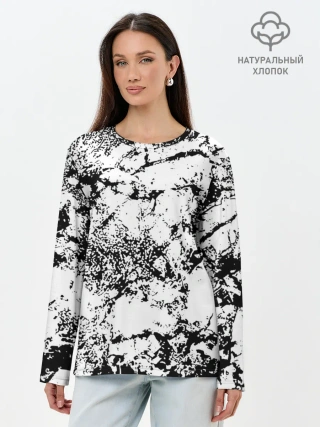 Лонгслив женский. Хлопок / Эффект линогравюры