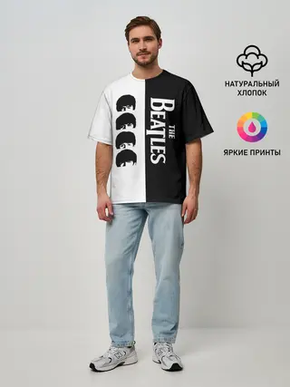 Мужская футболка оверсайз / The Beatles черно - белый партер