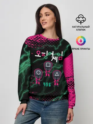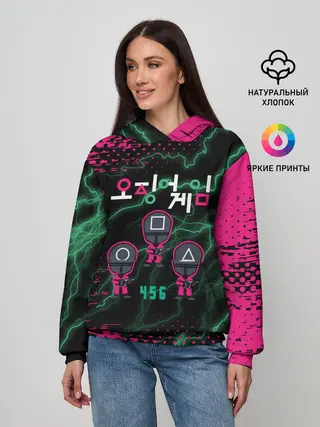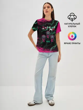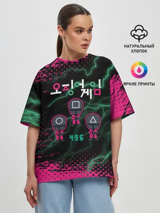 Женская футболка оверсайз / Игра в кальмара разряд молнии.