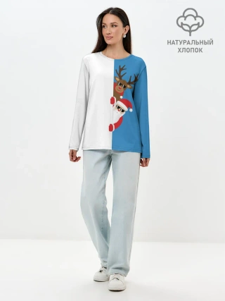 Лонгслив женский. Хлопок / Крутые Санта и Олень