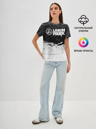 Женская футболка оверсайз / Линкин Парк Лого Рок ЧБ | Linkin Park Rock