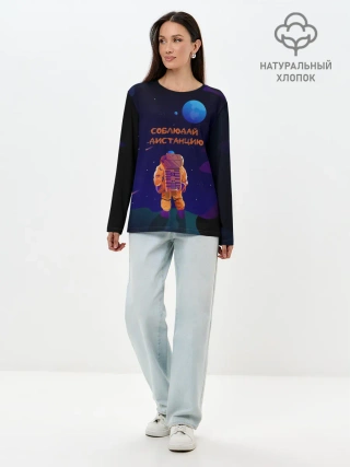 Лонгслив женский. Хлопок / Космонавт на Дистанции