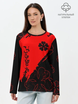 Лонгслив женский. Хлопок / Чёрный клевер: Black clover.