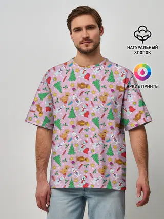 Мужская футболка оверсайз / Новогодние Зверюшки