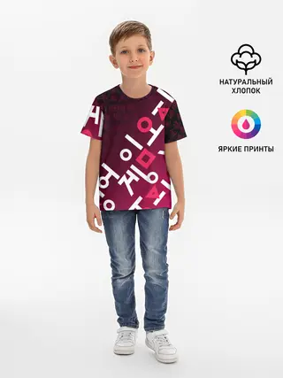 Детская базовая футболка / ИГРА В КАЛЬМАРА, ИЕРОГЛИФЫ ЛОГО