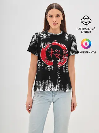 Женская футболка оверсайз / Кандзи Сакура Иероглифы Аниме