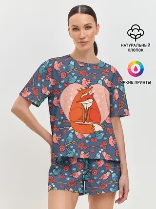 Женская пижама с шортами / Влюбленные лисички