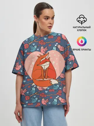 Женская футболка оверсайз / Влюбленные лисички