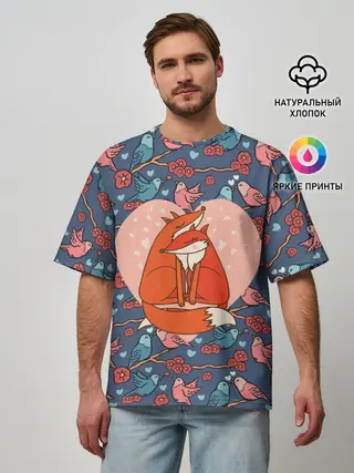 Мужская футболка оверсайз / Влюбленные лисички
